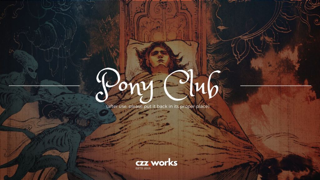 CosmicZion Zine, korku serisinin ilk yayını ile okurların karşısına çıkıyor. Uluslararası bir sanat koleksiyonu kimliği taşıyan Pony Club, kâbus kavramını özgün ve çarpıcı yorumlarla gözler önüne sermeyi hedefliyor. 10 farklı ülkeden 14 yetenekli sanatçının kâbus temalı eserlerinden oluşan bu sanat seçkisi, çizerlerin gözünden kâbus tanımını yakından inceleme olanağı sunuyor.